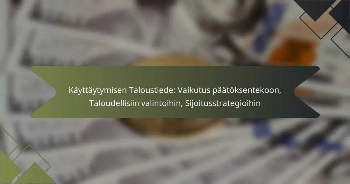 Käyttäytymisen taloustiede vaikuttaa sijoituspäätöksiin tunnistamalla kognitiiviset vinoumat, jotka voivat vääristää sijoittajien arvioita. Esimerkiksi, liiallinen itseluottamus voi johtaa liian riskialttiisiin sijoituksiin, kun taas pelko markkinoiden laskusta voi estää sijoittamasta lainkaan. Tietoisuus näistä vinoumista voi auttaa sijoittajia tekemään harkitumpia päätöksiä.